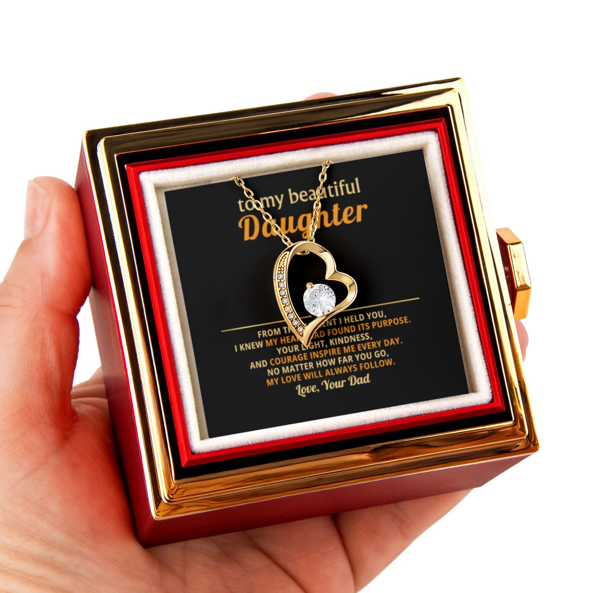 To My Beautiful Daughter Heart Necklace - Luxury Gift Box Set - Sterling Silver Forever Love Jewelry - Birthday Christmas Gift