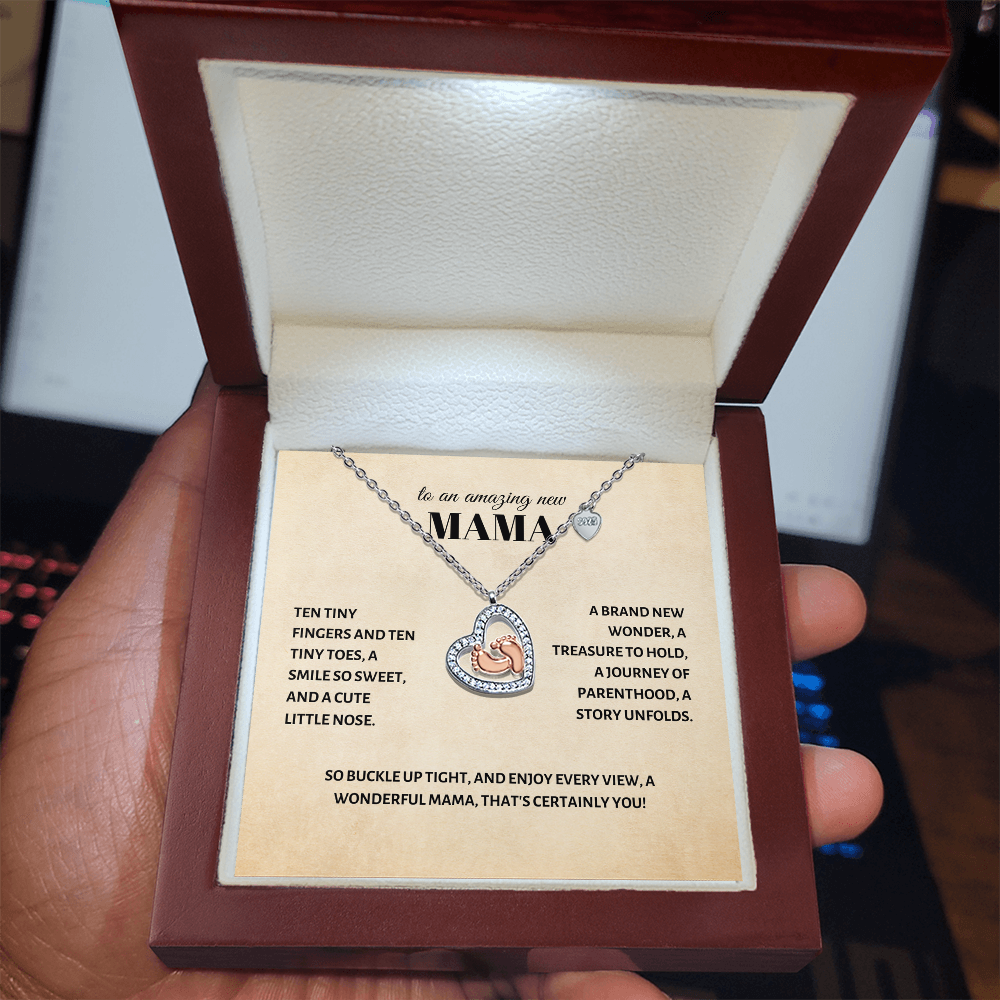 Celebrating New Motherhood: Heart & Baby Feet Necklace Gift for Amazing New Mama